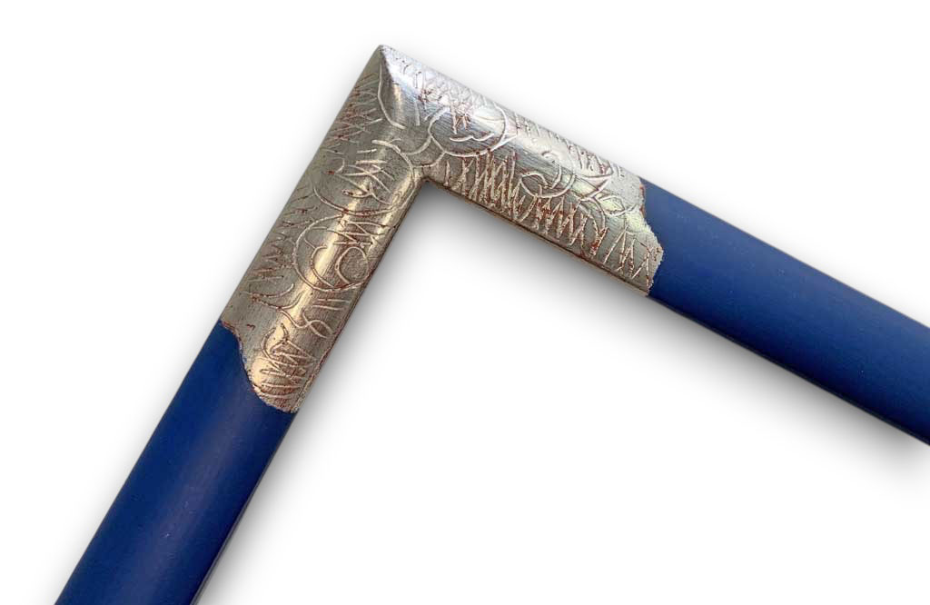 Bleu pierre angle gravé or blanc