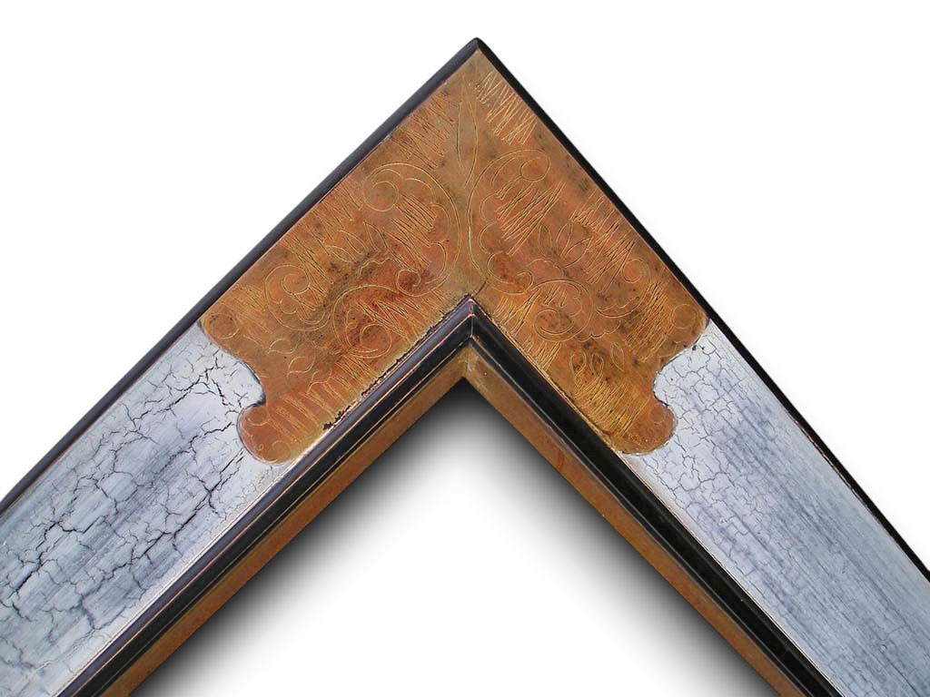 Angles gravés or craquelé blanc filets noirs